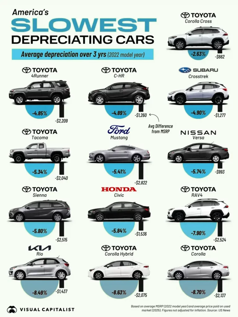 Even a 3%–6% difference in natural depreciation makes a major impact when combined with post-accident diminished value. Cars that naturally hold value tend to experience more significant financial losses when damaged, which strengthens DV claims.